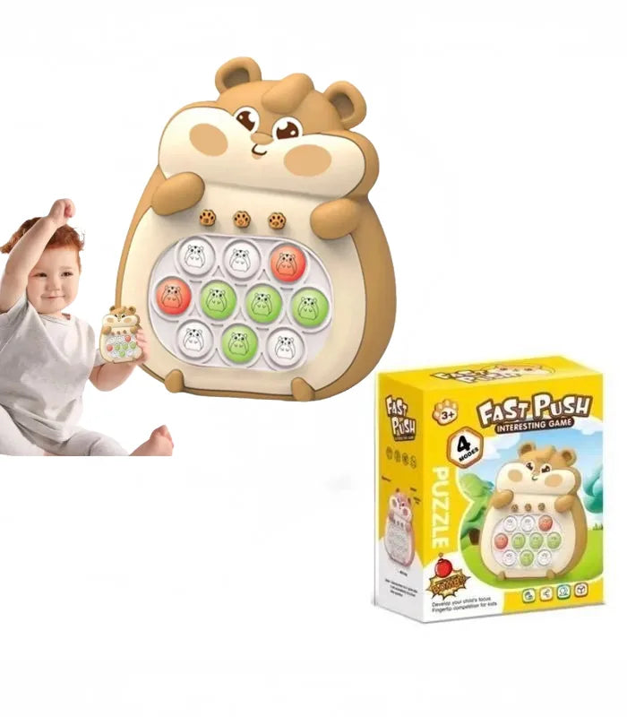 Interactive hamster toy, offers a fun experience with 4 interactive play modes and 999 progressive levels. Perfect for developing children's mental and motor skills with light and sound effects